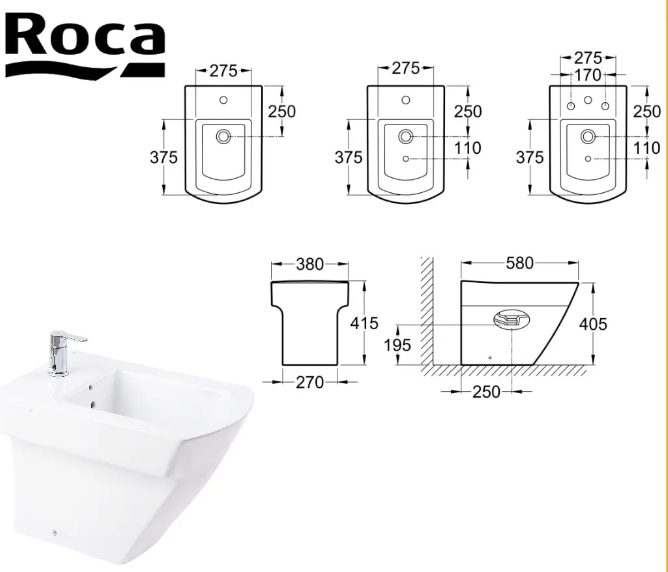 Bidet Roca Hall Para Grifería Monocomando Baño Sanitario Bidé 1 Agujero Blanco 375 x 585 x 415 mm.